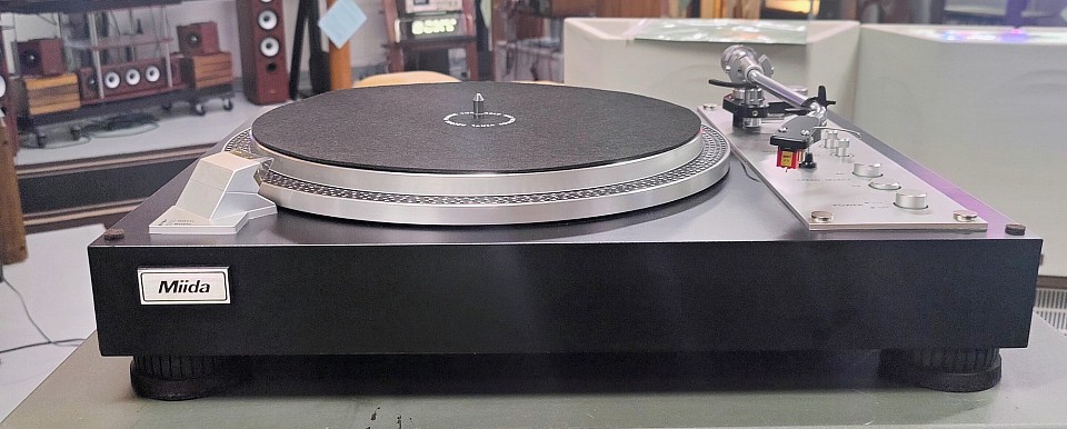 This very rare Miida T3115R stereo turntable is a manually-operated, servo-controlled, direct-drive, 2 speed (33, 45 rpm) table powered by a six-pole synchronous motor.